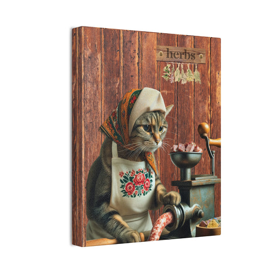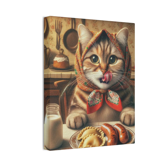 Babushka Cat, Tuxedo Cat Art, Kitty Makes Pierogi Wall Art