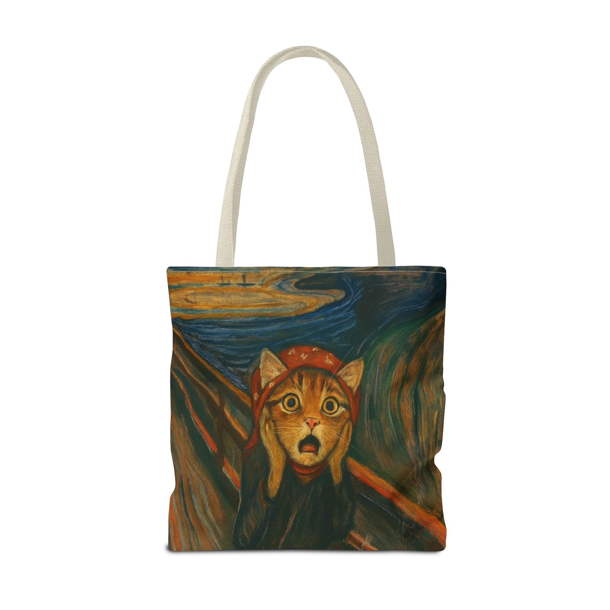 Crafted from durable polyester that keeps its shape, it’s perfect for grocery runs, beach days, travel, or as a thoughtful gift for the cat enthusiast or art lover in your life. With multiple handle color options, you can customize your tote to match your personal style while making an eco-friendly choice.