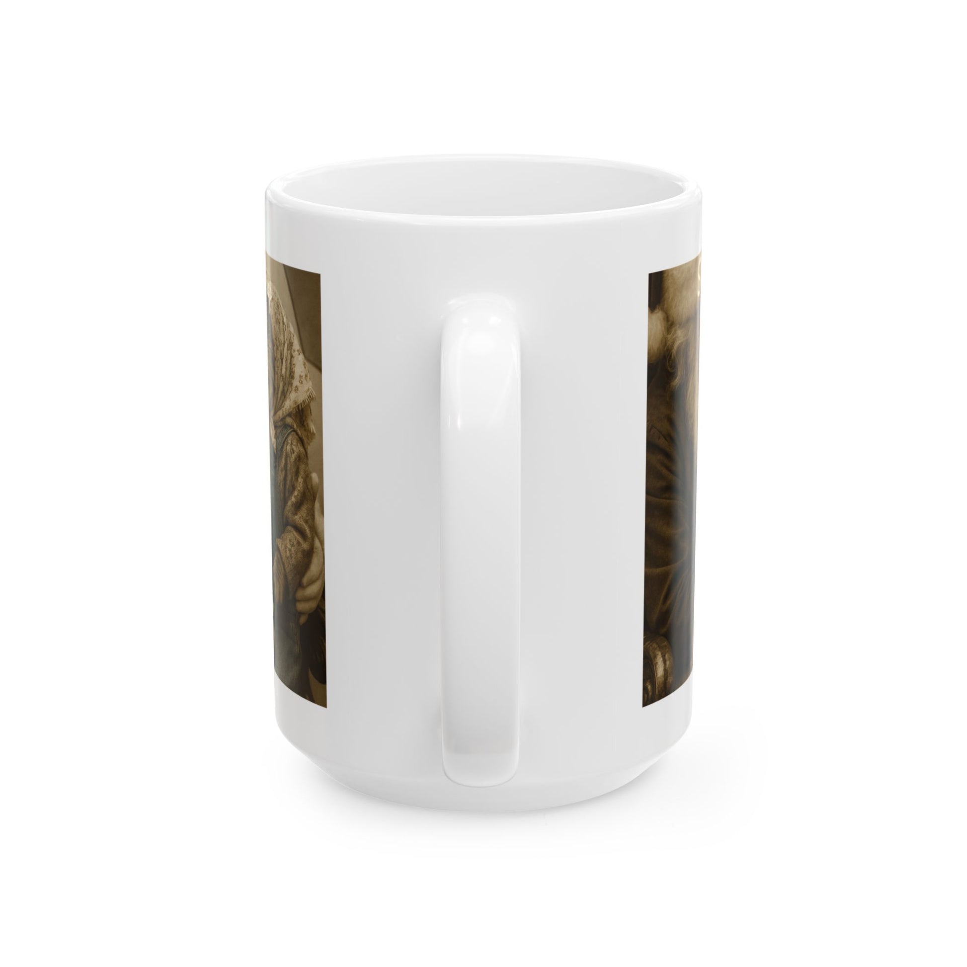 Babushka Cat Childhood Memories Funny Santa Cat Ceramic Mug, (11oz, 15oz)