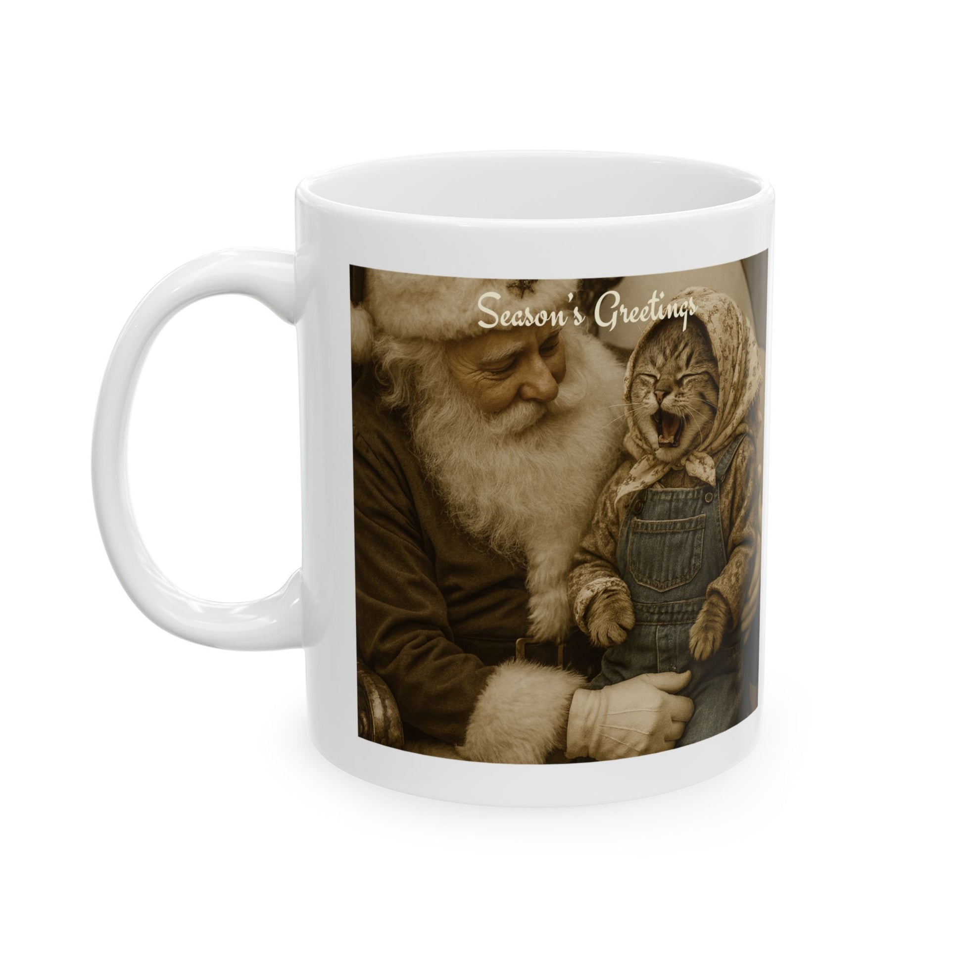 Babushka Cat Funny Santa Cat Ceramic Mug (11oz or 15oz)