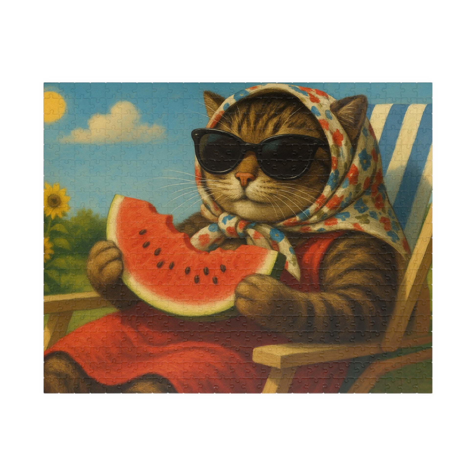 Babushka Cat Enjoys Watermelon in the Sun (520 Piece)