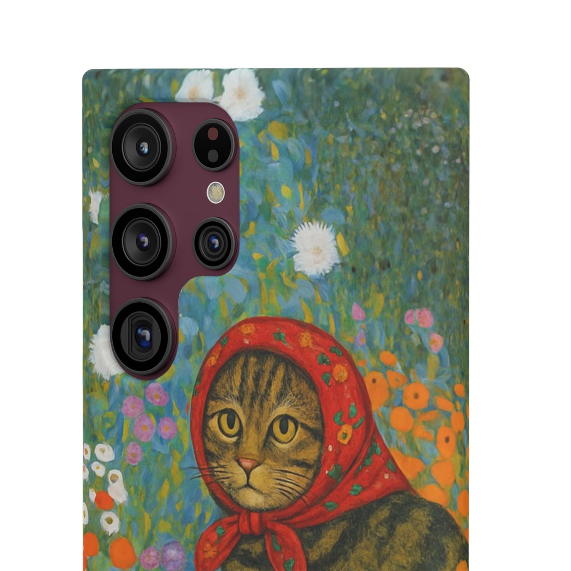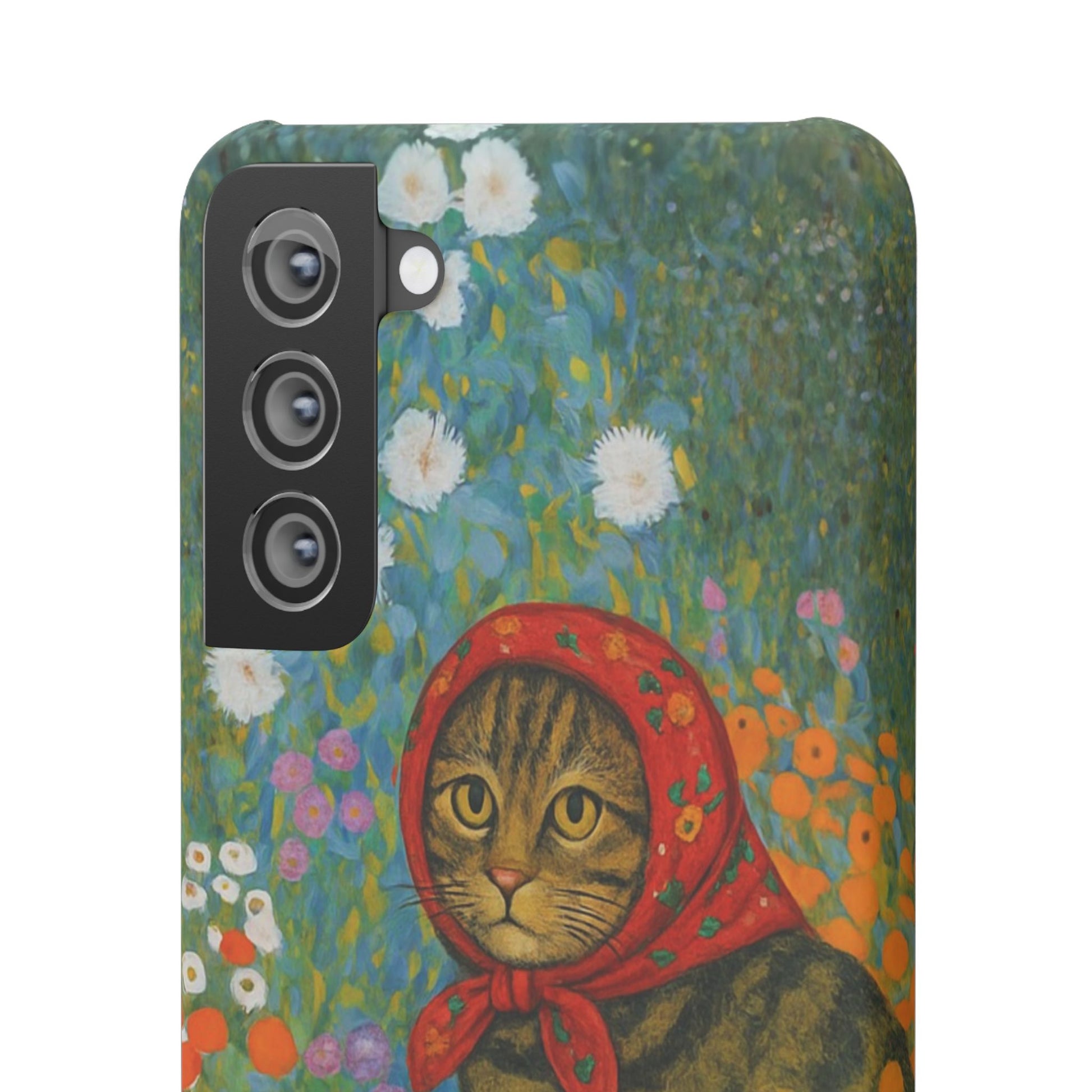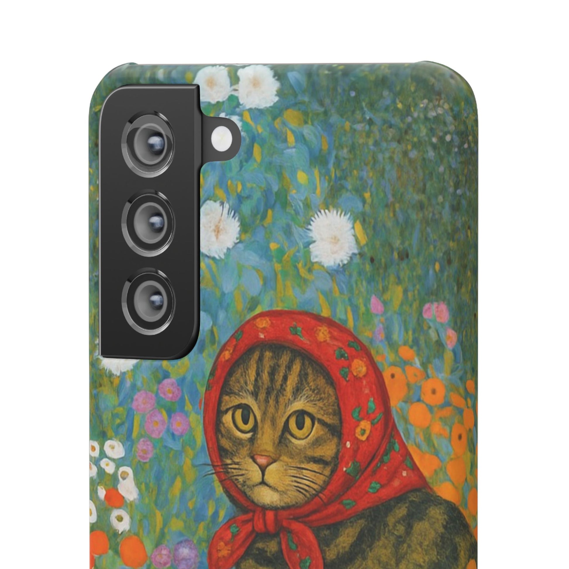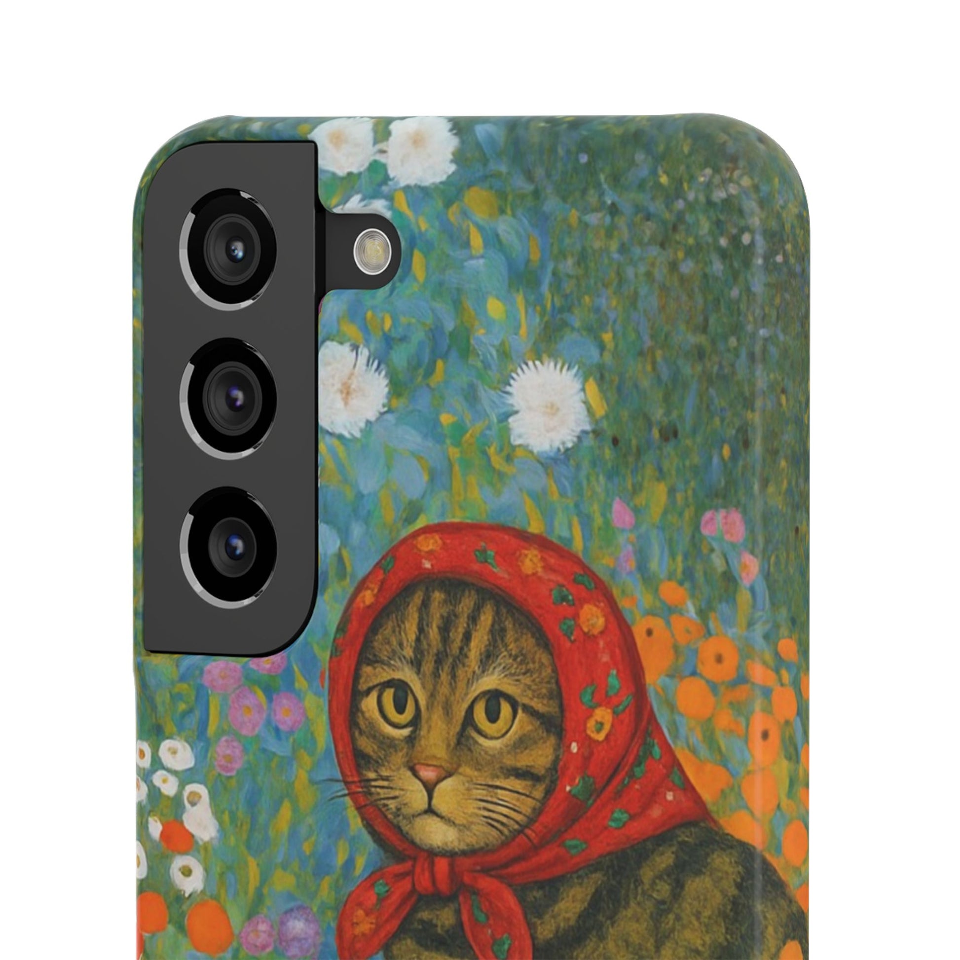These premium quality phone cases are made with durable plastic and maintain a slim, elegant look, all while keeping your devices safe from scratches. Decorated with our kitschy babuska cat parody art. They also support wireless charging for standard connectivity.