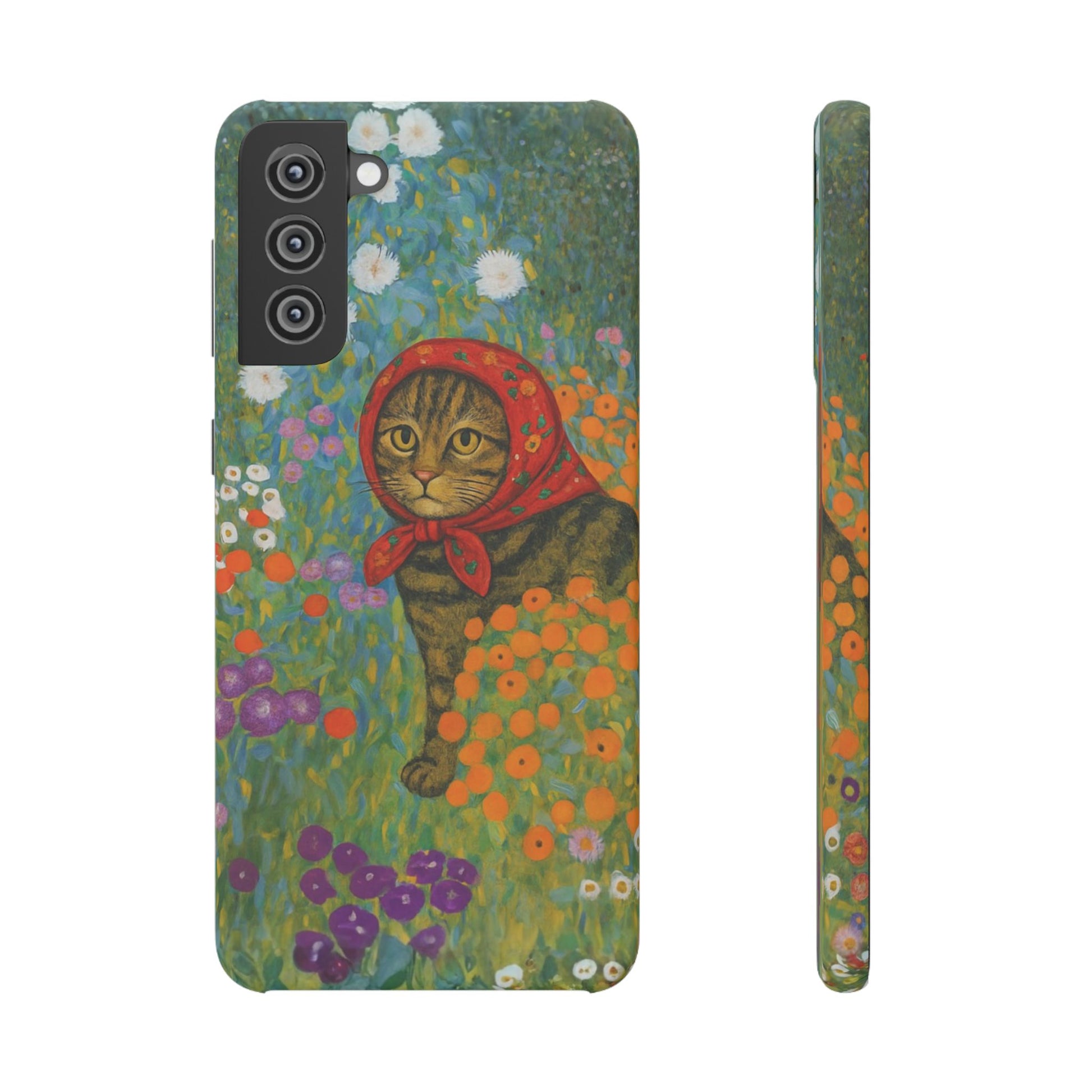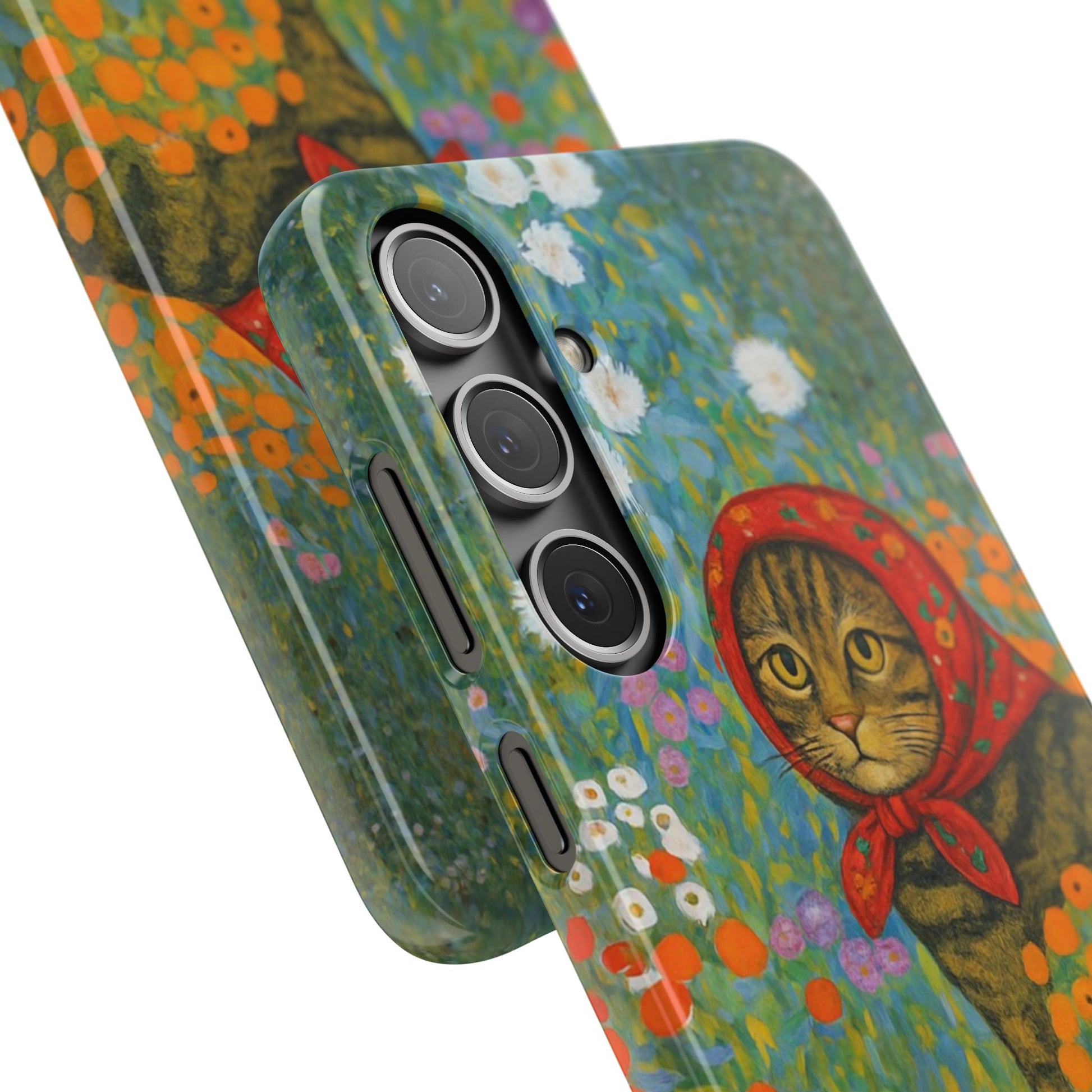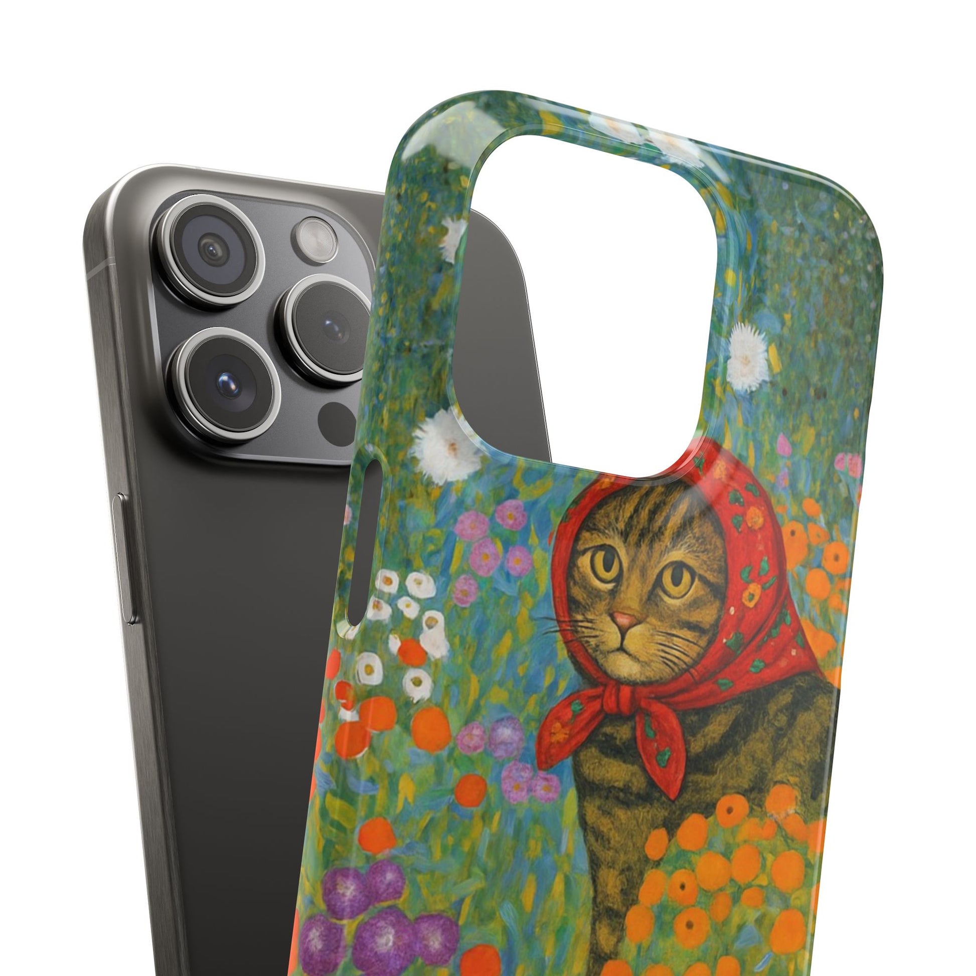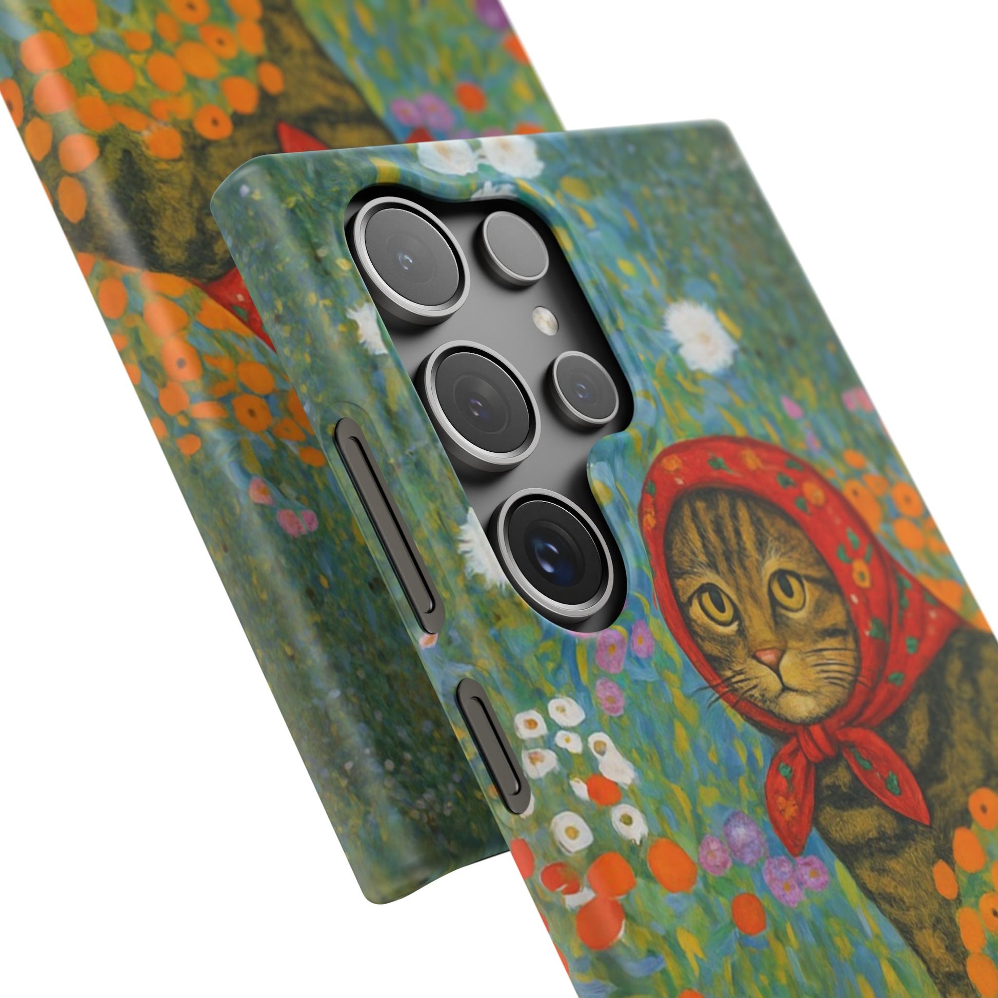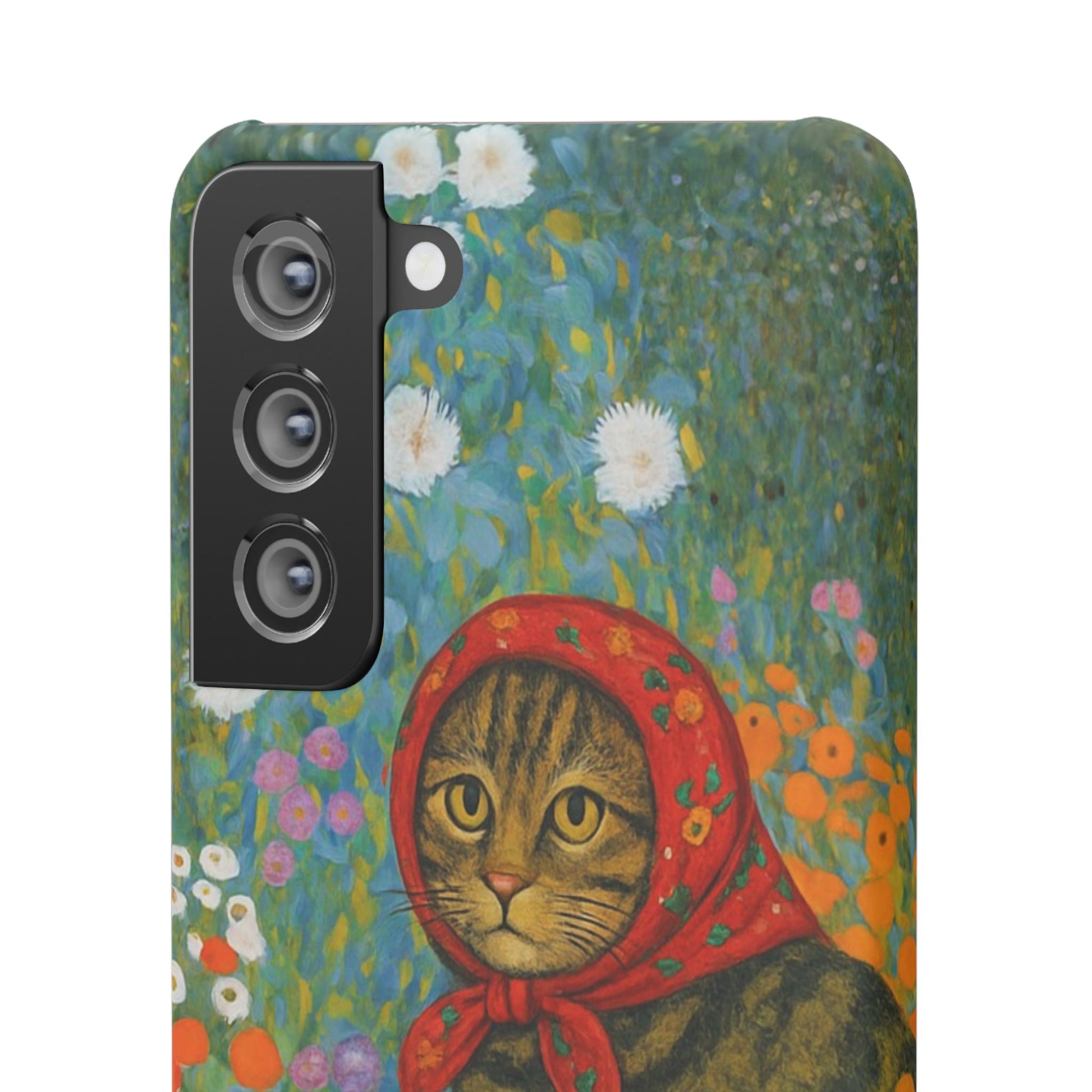 These premium quality phone cases are made with durable plastic and maintain a slim, elegant look, all while keeping your devices safe from scratches. Decorated with our kitschy babuska cat parody art. They also support wireless charging for standard connectivity.