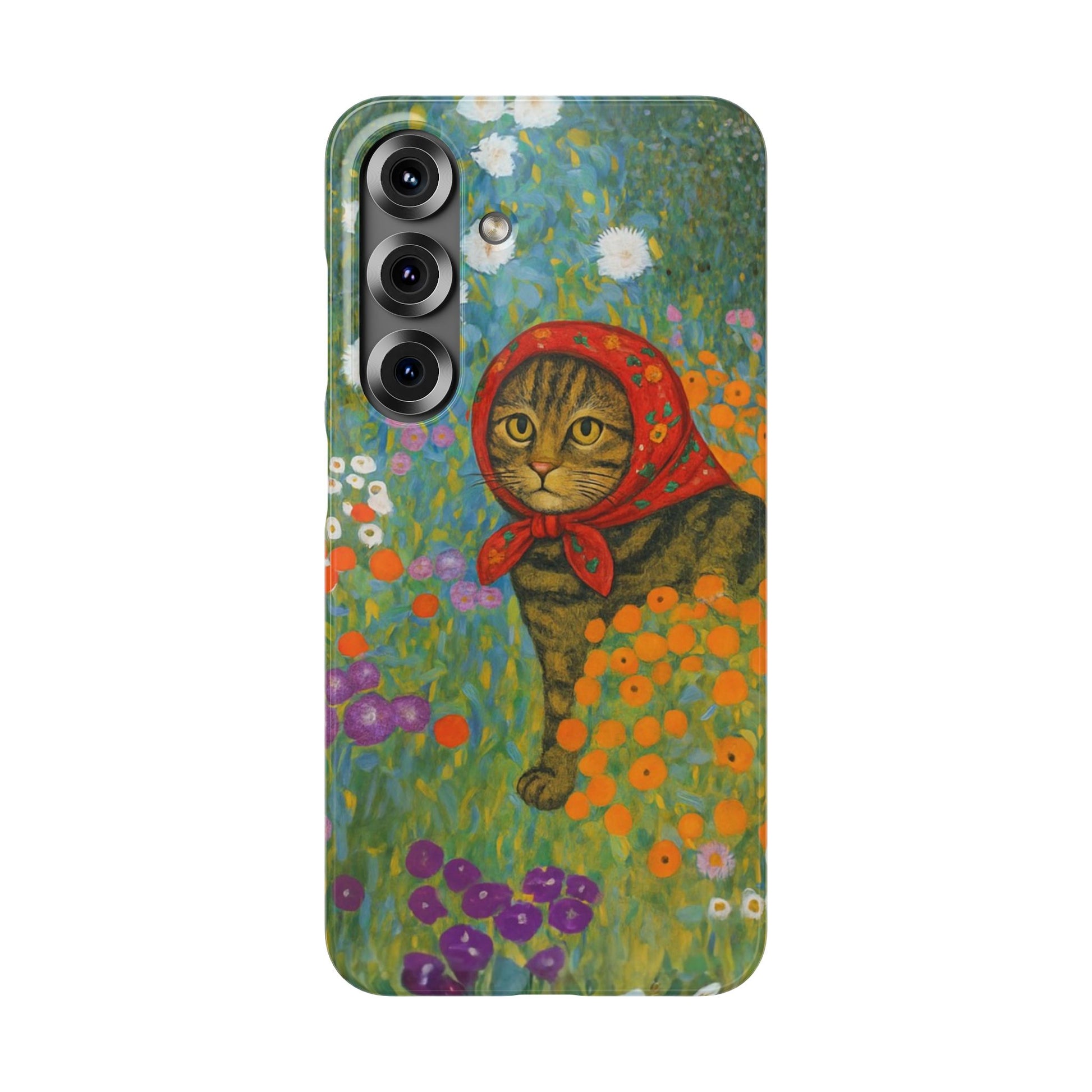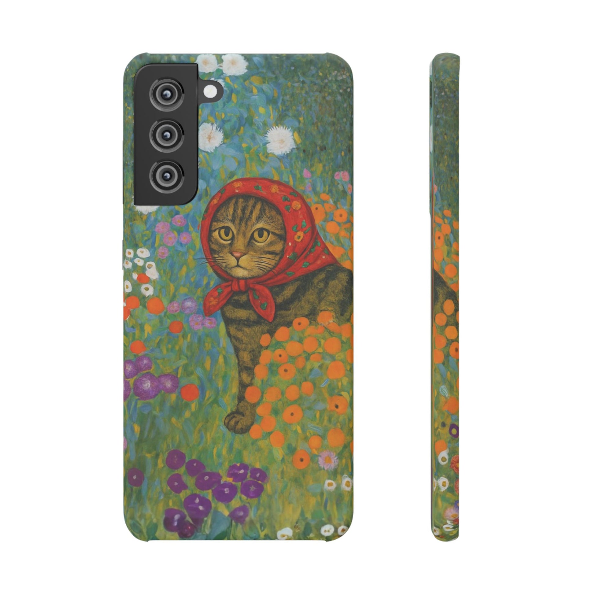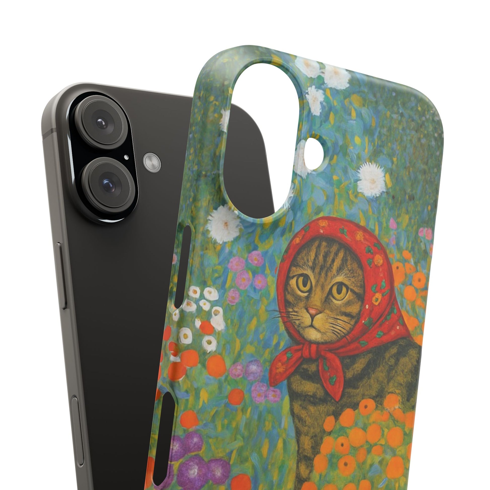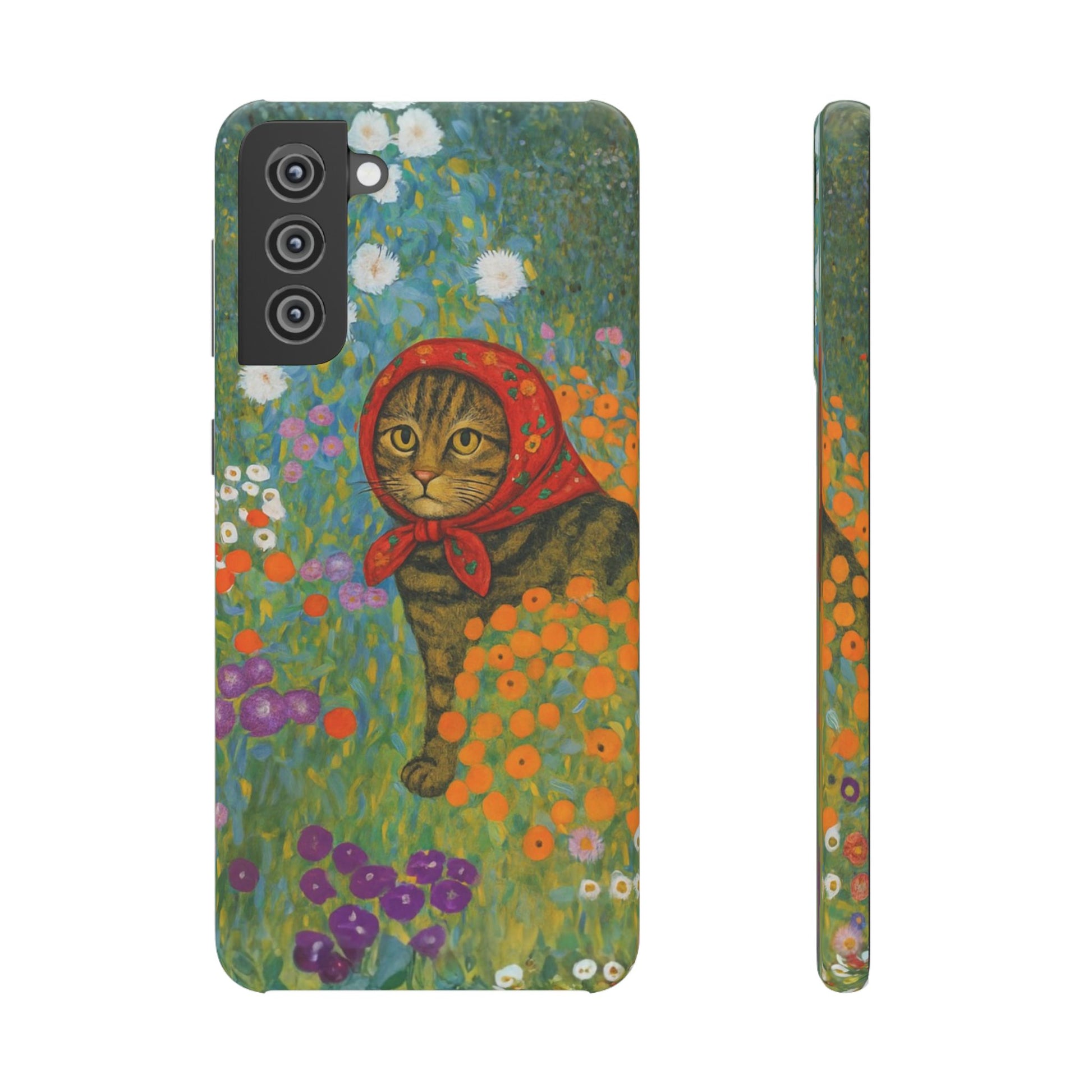 These premium quality phone cases are made with durable plastic and maintain a slim, elegant look, all while keeping your devices safe from scratches. Decorated with our kitschy babuska cat parody art. They also support wireless charging for standard connectivity.