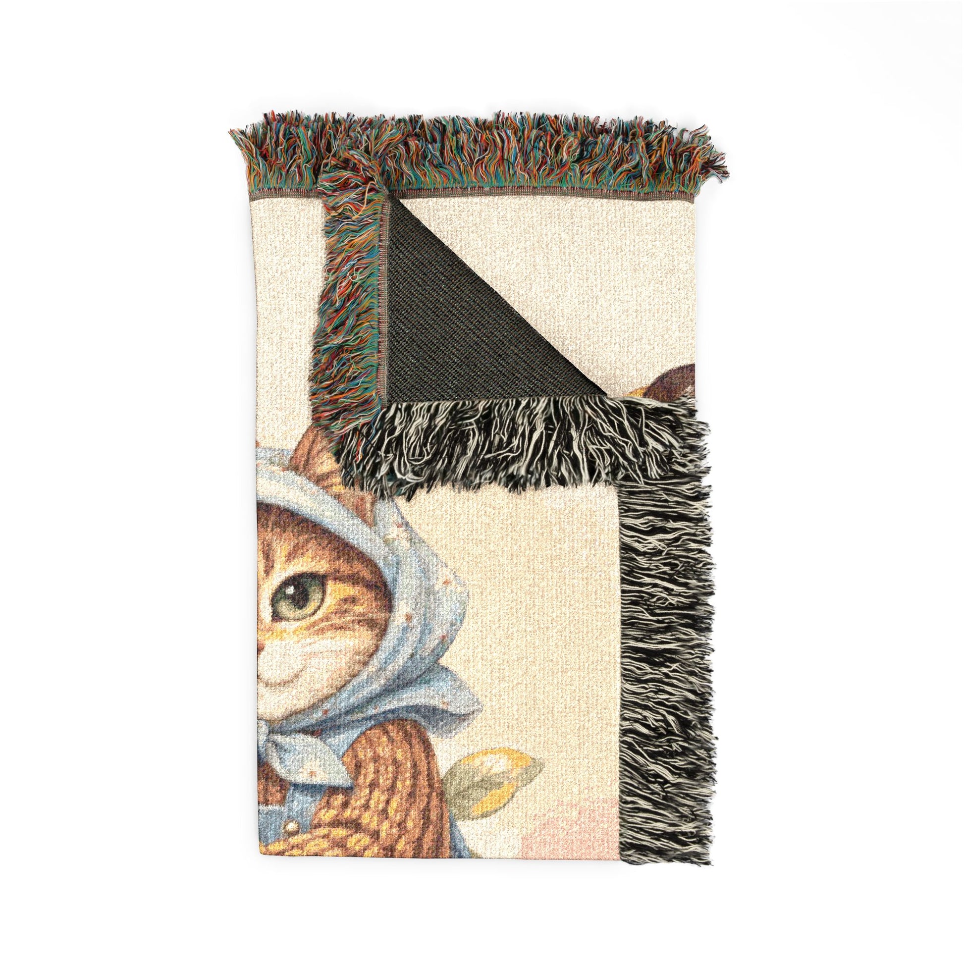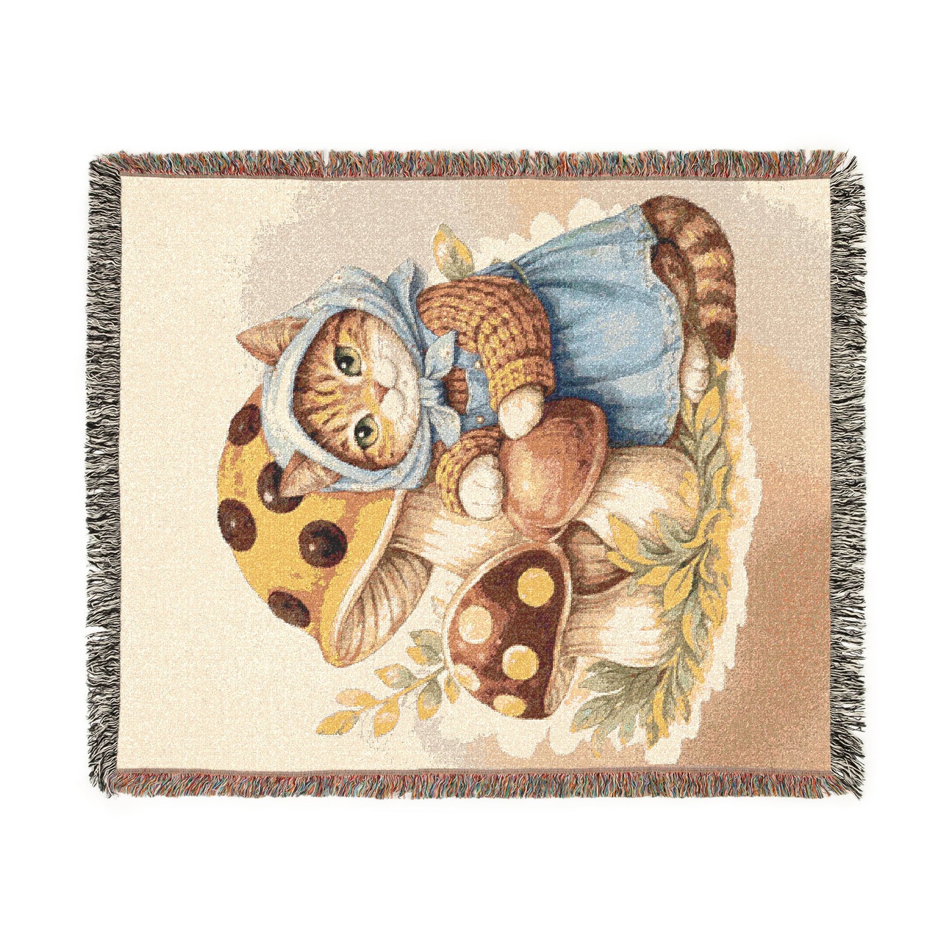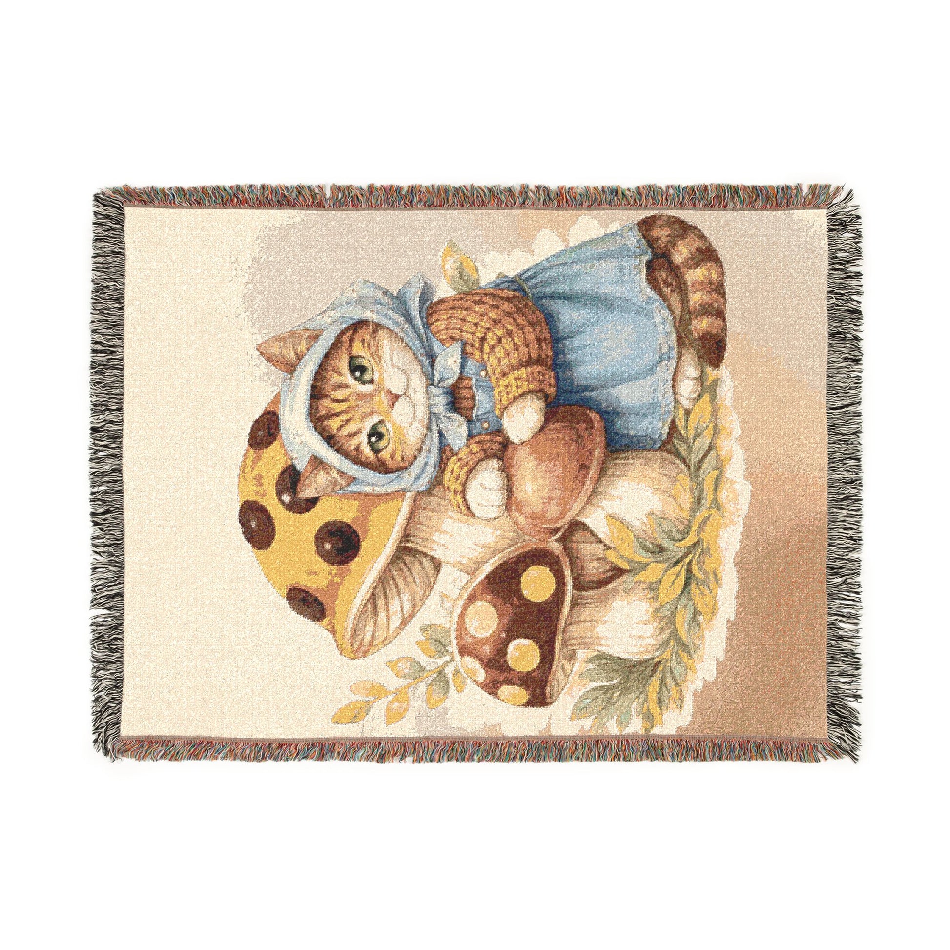 Babushka Cat Merry Mushroom Style Art Woven Blanket Product features - 100% Cotton fabric for durability and smoothness -