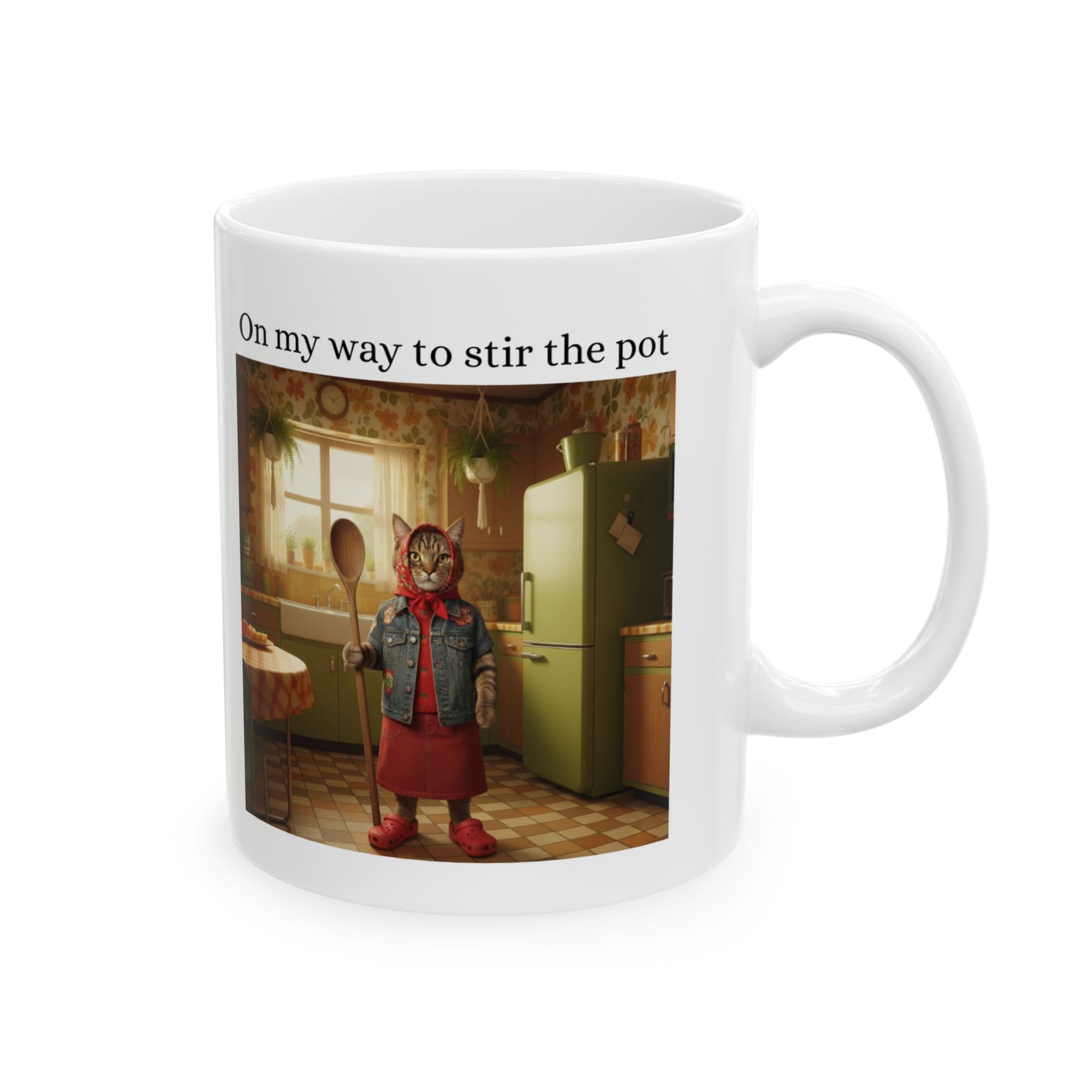 Babushka Cat Pot Stirrer Ceramic Mug