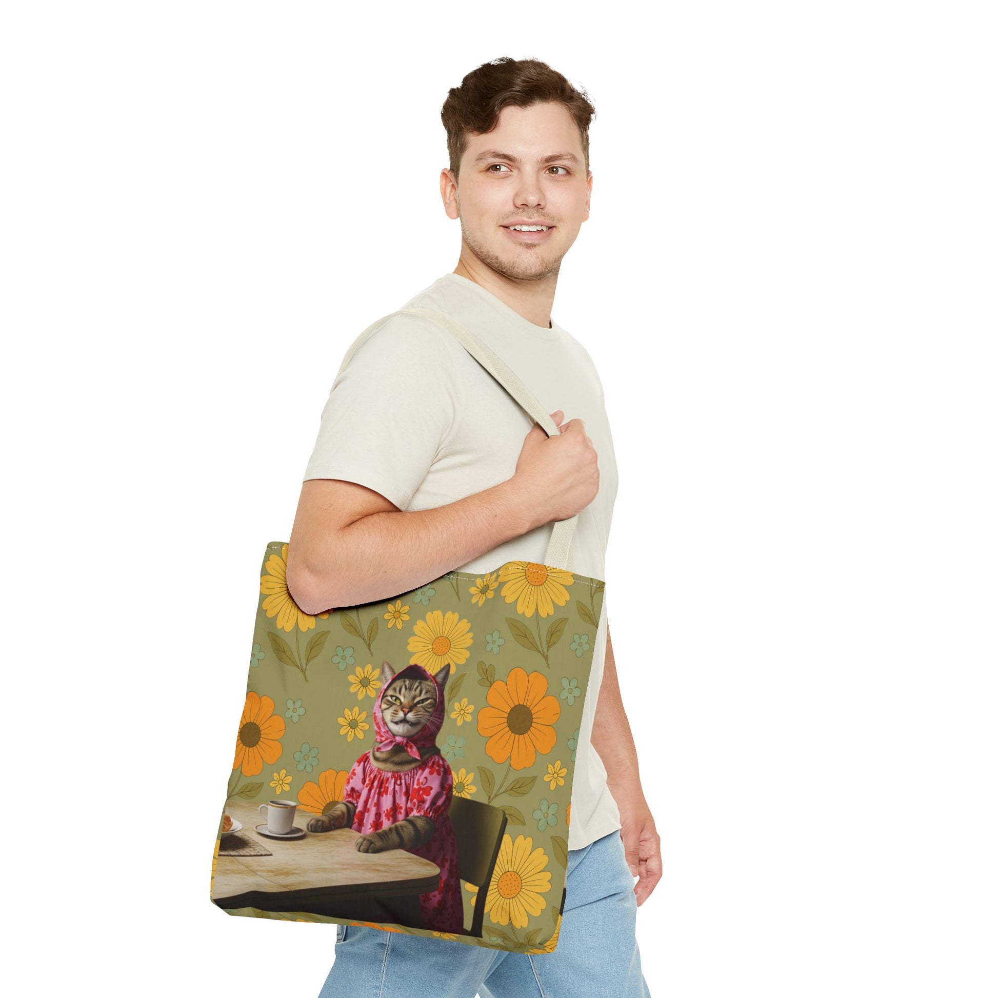 Babushka Cat Retro Style Kitschy Tote Bag (AOP)