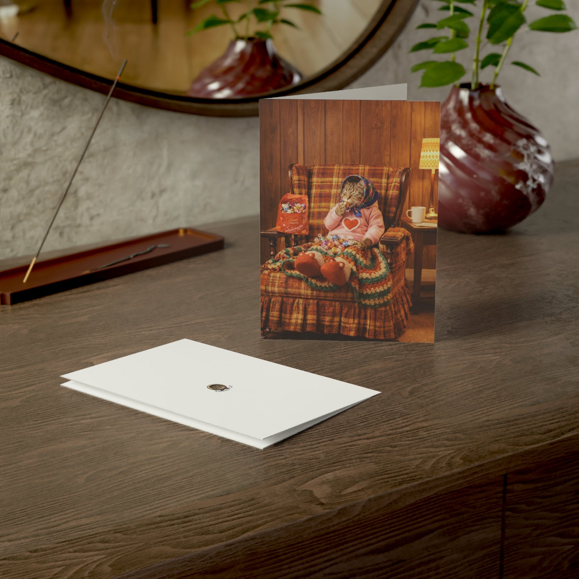 Babushka Cat Valentine's Greeting Cards Set of 10. Inside says "Happy Valentine's Day. Sorry I ate all the chocolate." A personalized wish is the best one, especially when it comes on a customized greeting card like these. Available in sets of 10. All cards come with envelopes. Have the purrrfect cards this year!
