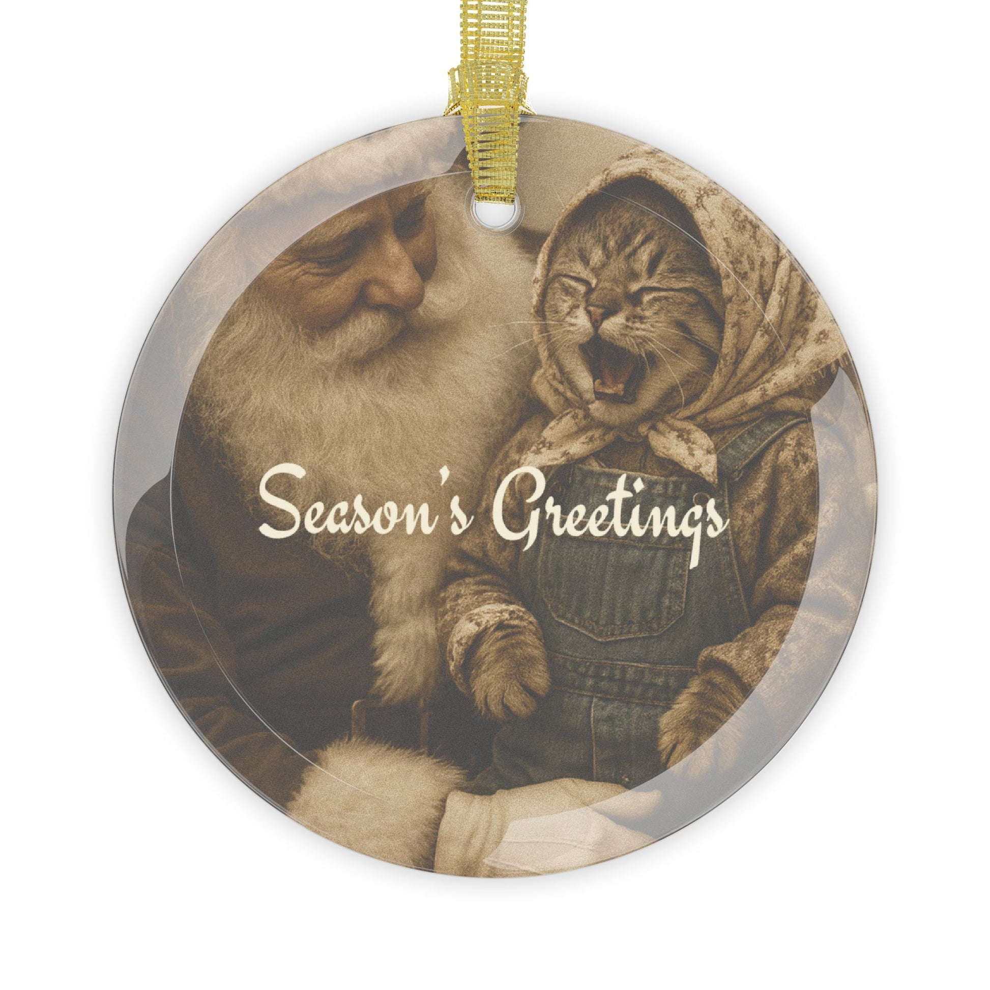 Babushka Cat Ornament, Funny Christmas Cat Ornament, Glass Ornament